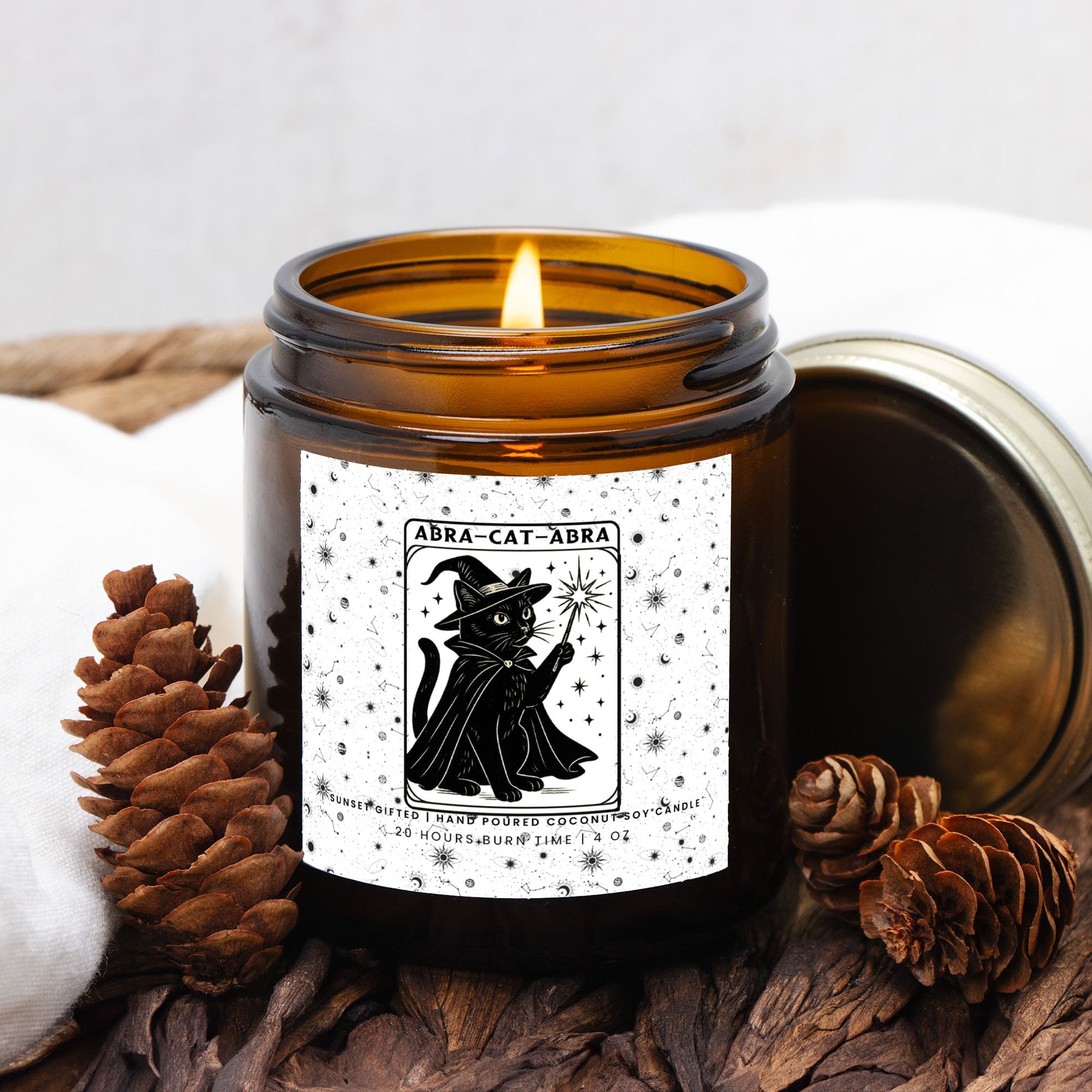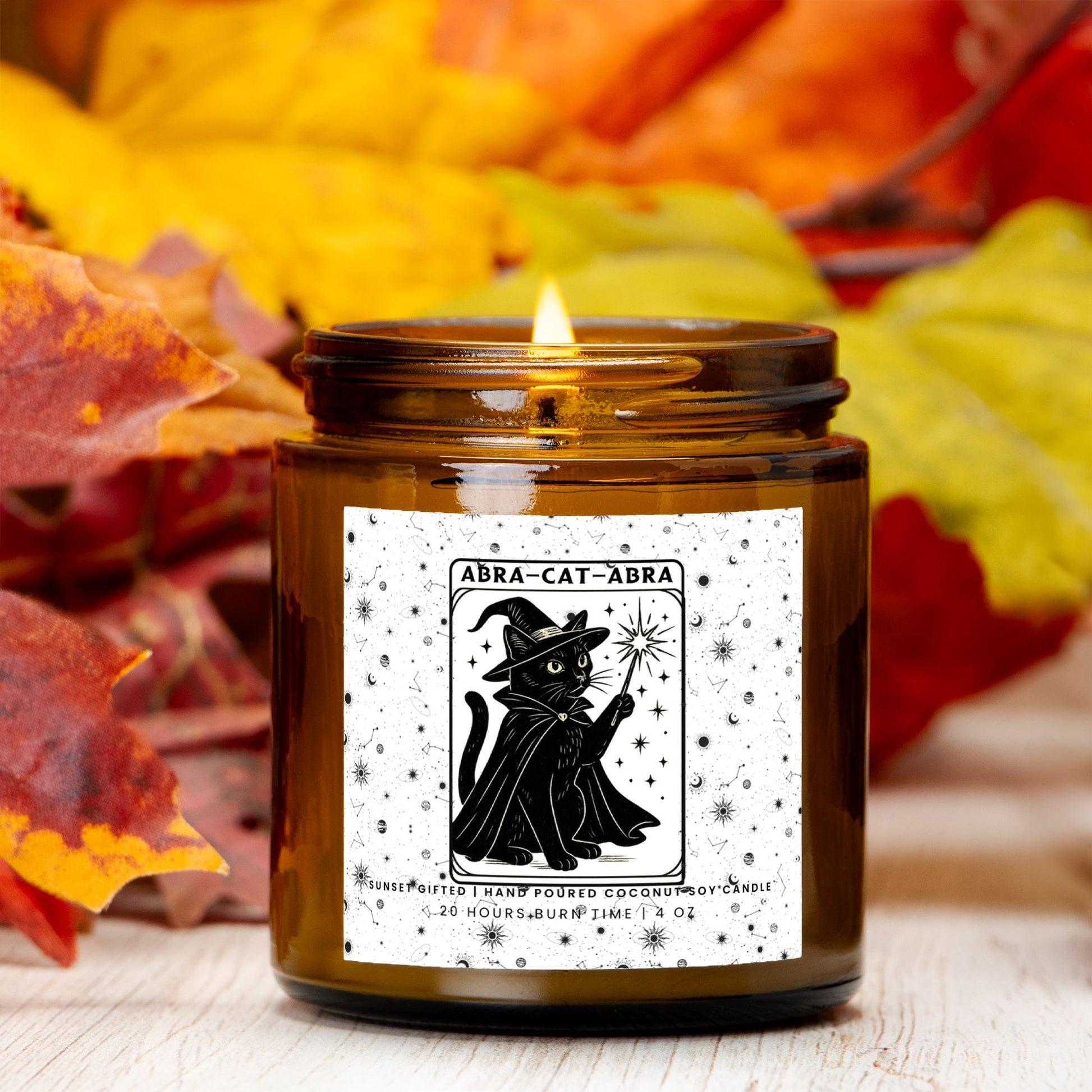 Black Cat Halloween Candle Gift - Haunted Library Witchy Cat Mom - Bookish Gifts