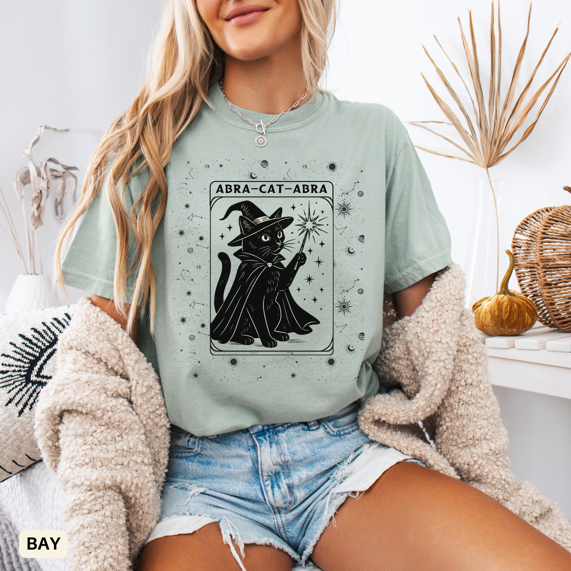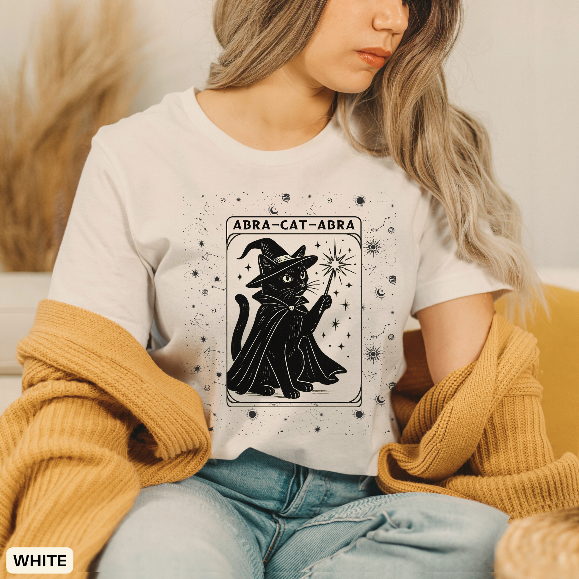 This tee is ideal for cat lovers and those who enjoy a touch of whimsy in their fashion. Perfect for holidays like Halloween, cozy get-togethers, or simply expressing your love for all things cute and magical, this shirt adds a charming vibe to any outfit.