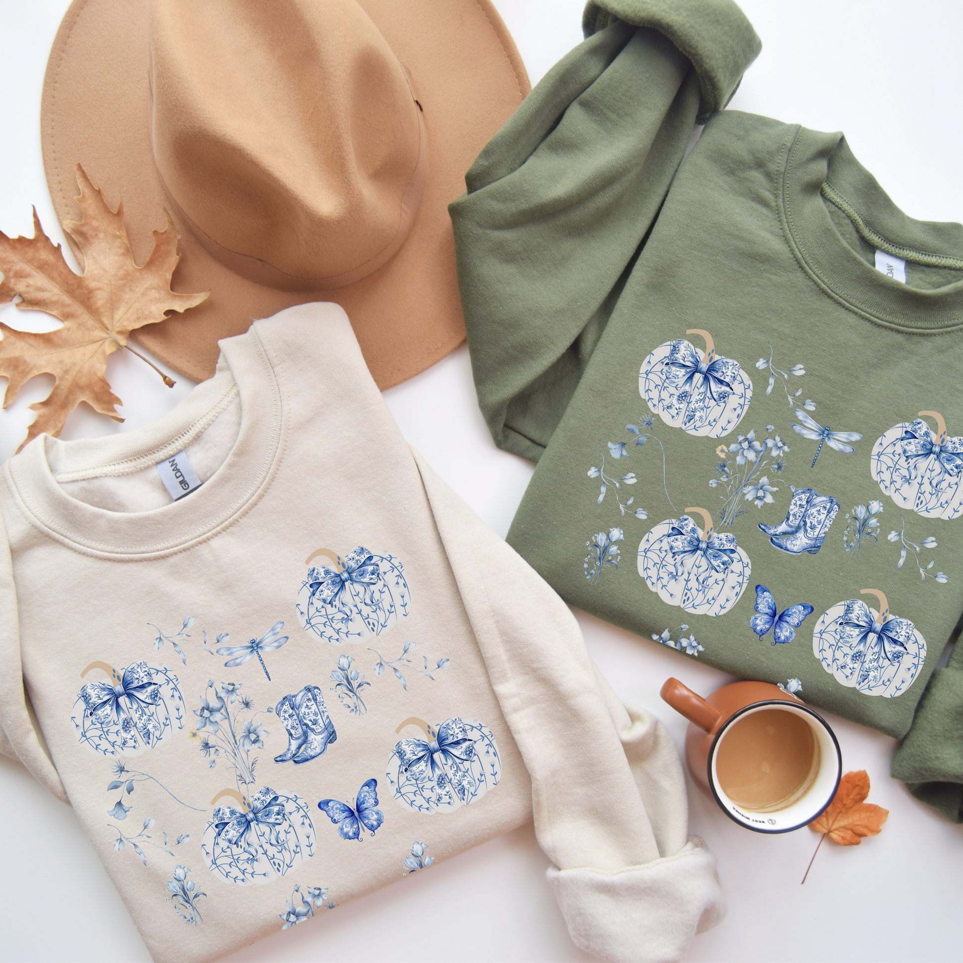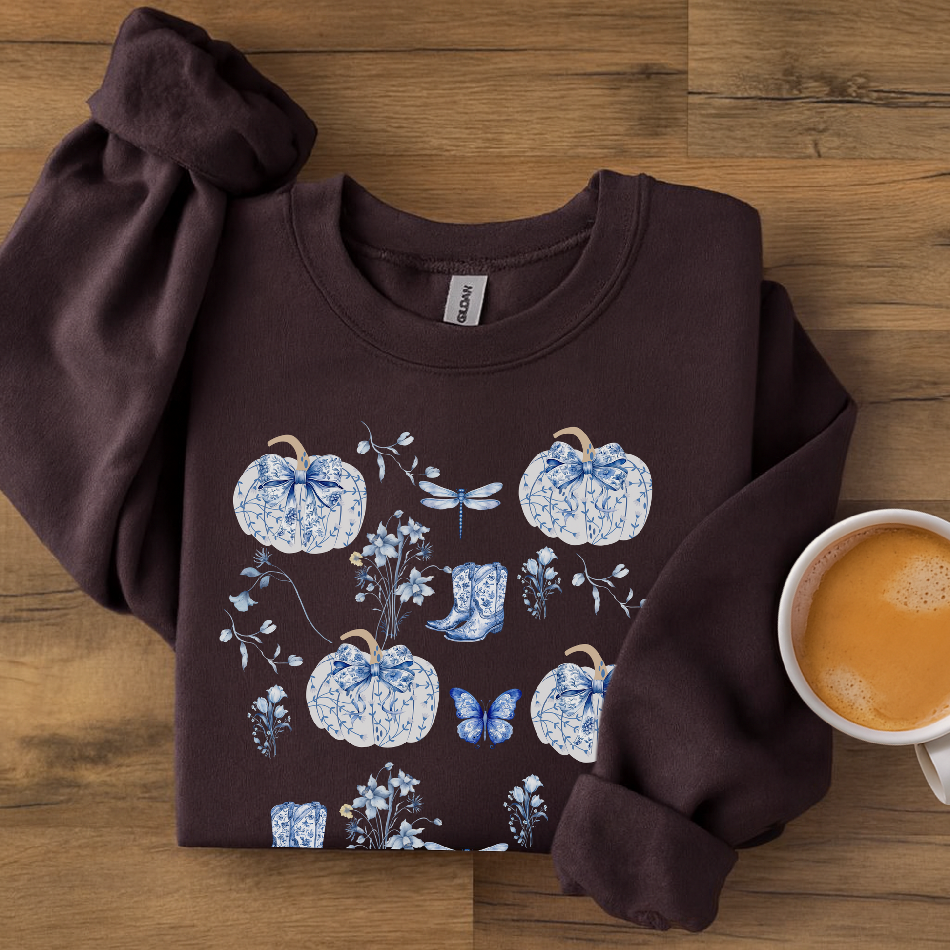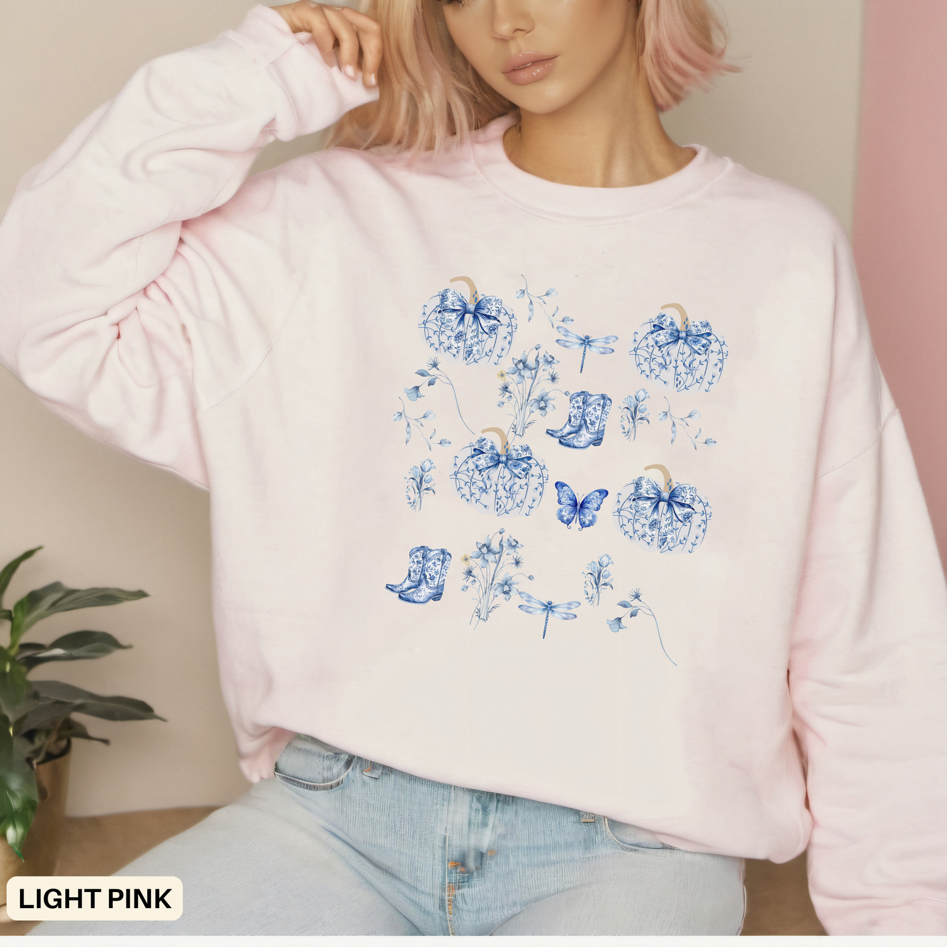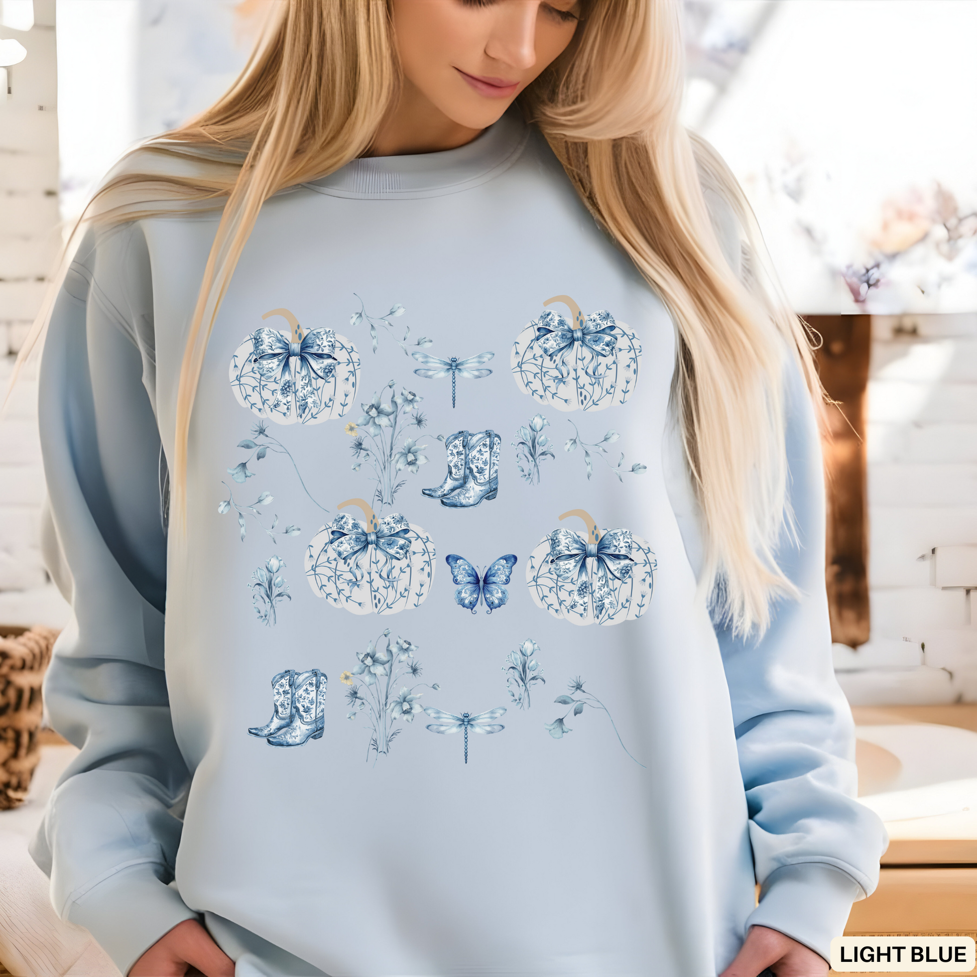 Blue Coquette Pumpkin Sweatshirt - Cozy Floral Women Fall Outfits