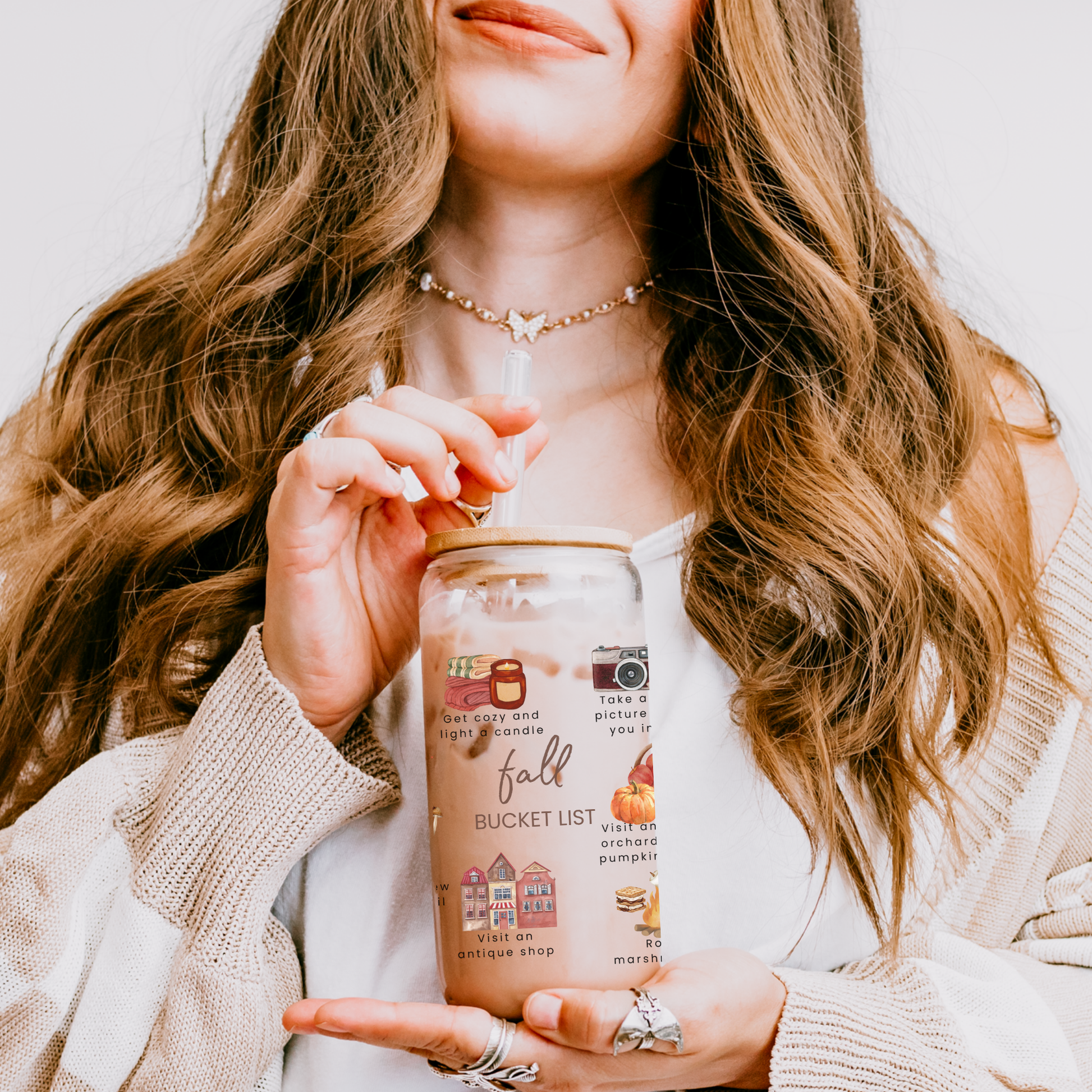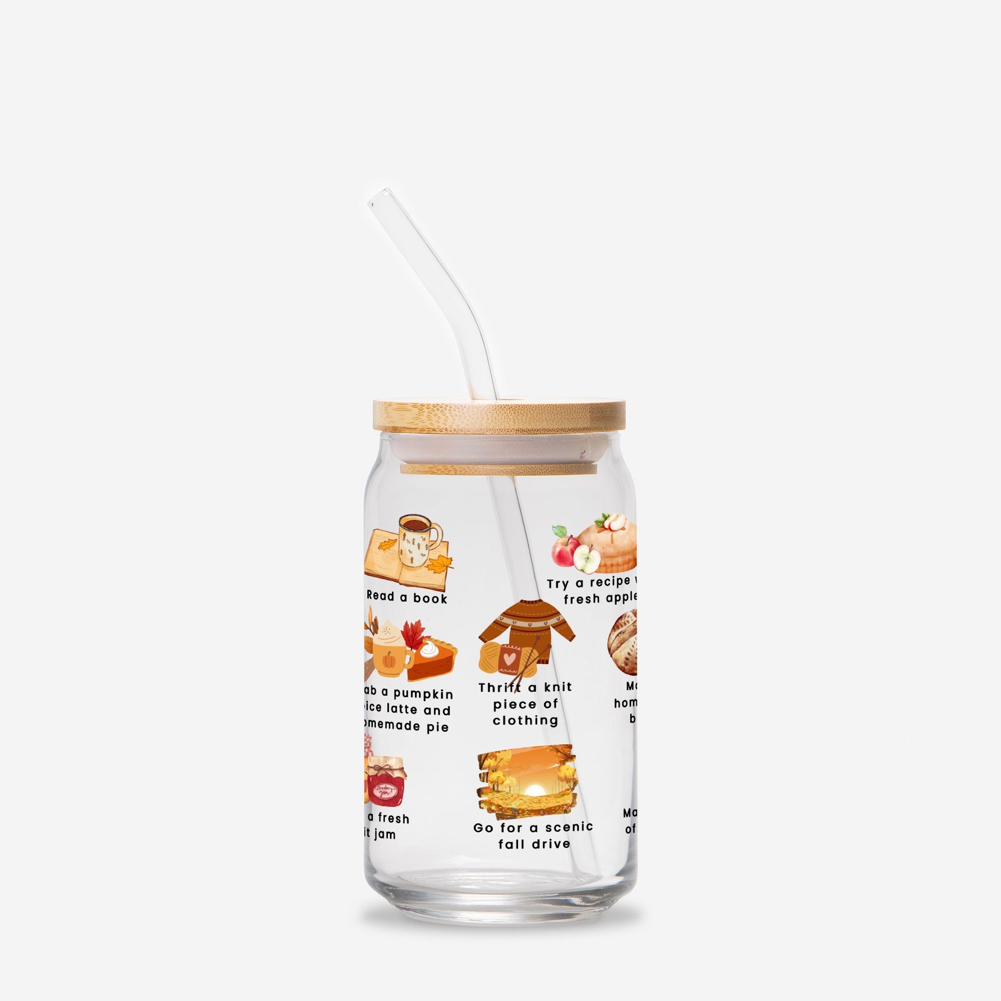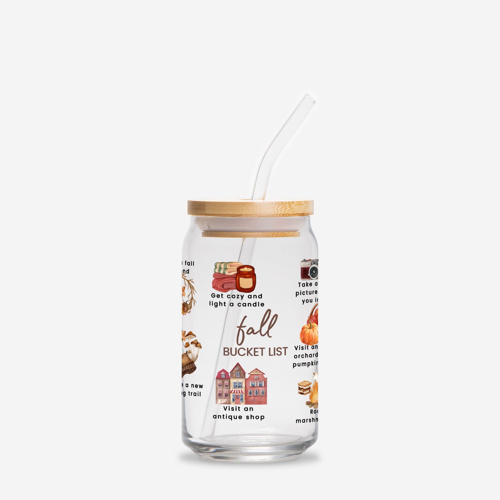 Cozy Fall Bucket List Sipper Glass Cup - Autumn Gifts
