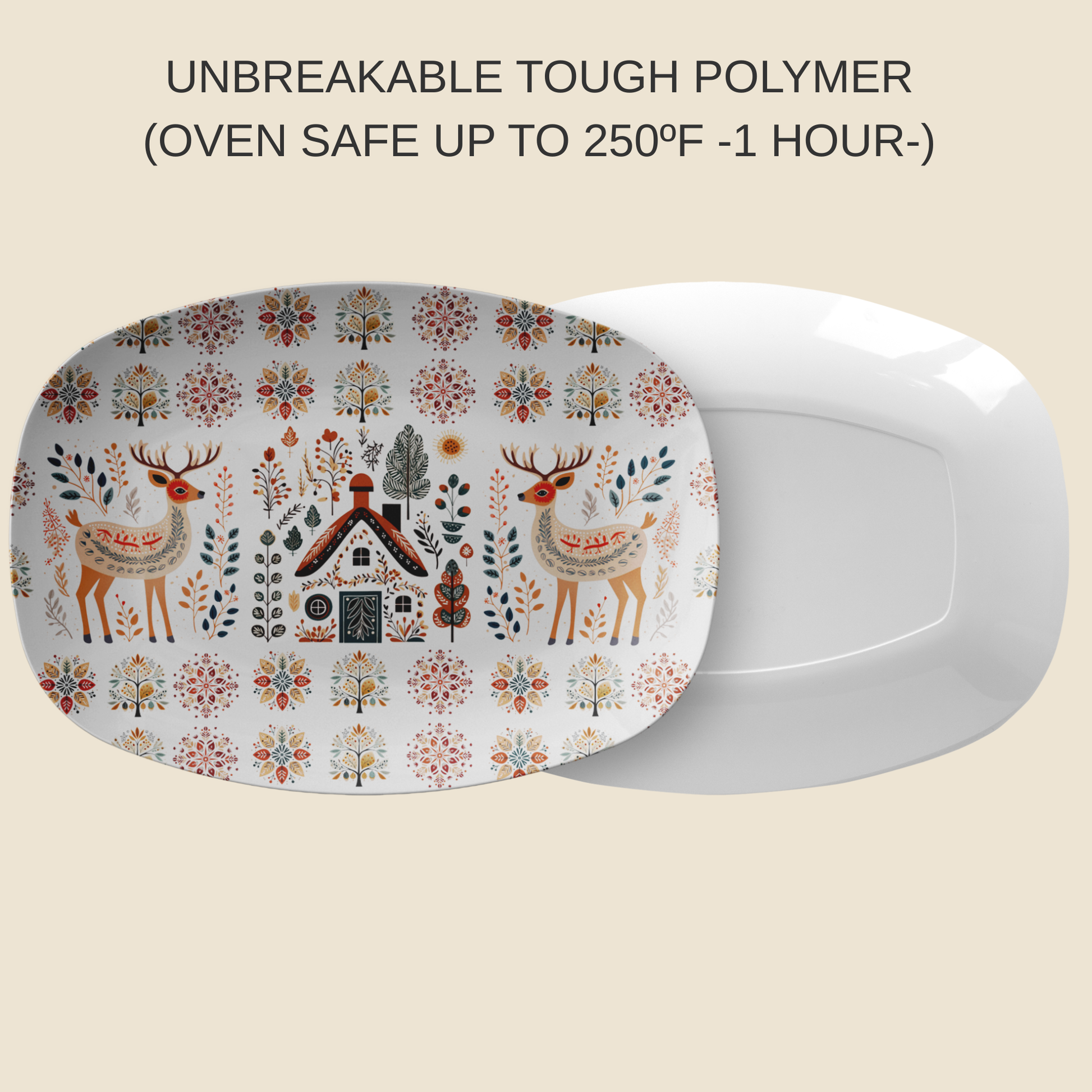 Deer nordic folk art platter - Hostess Family Gift Hygge Home