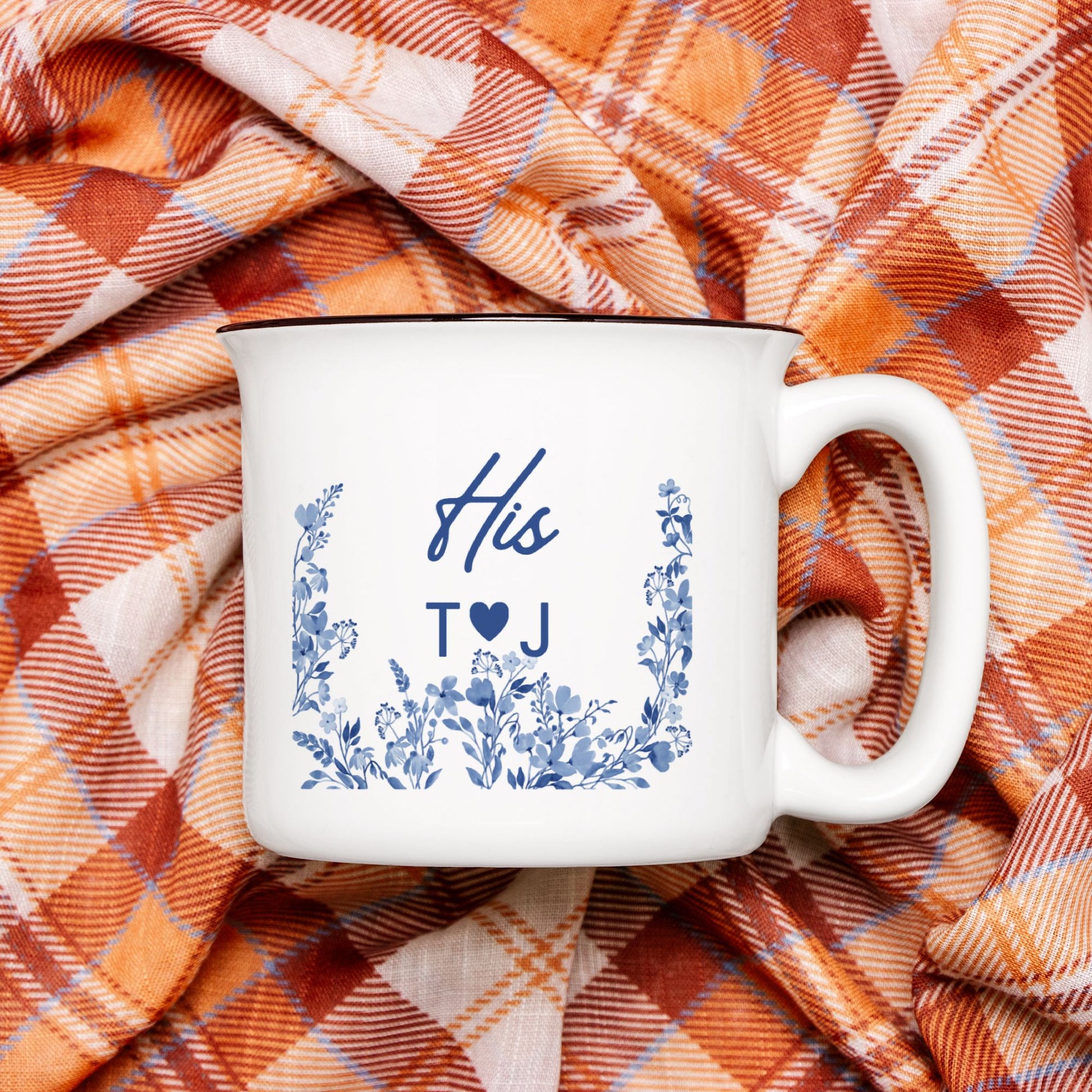Personalized Engagement Gift Mug - His and Hers Blue Floral - Custom Wedding Gift for Couple