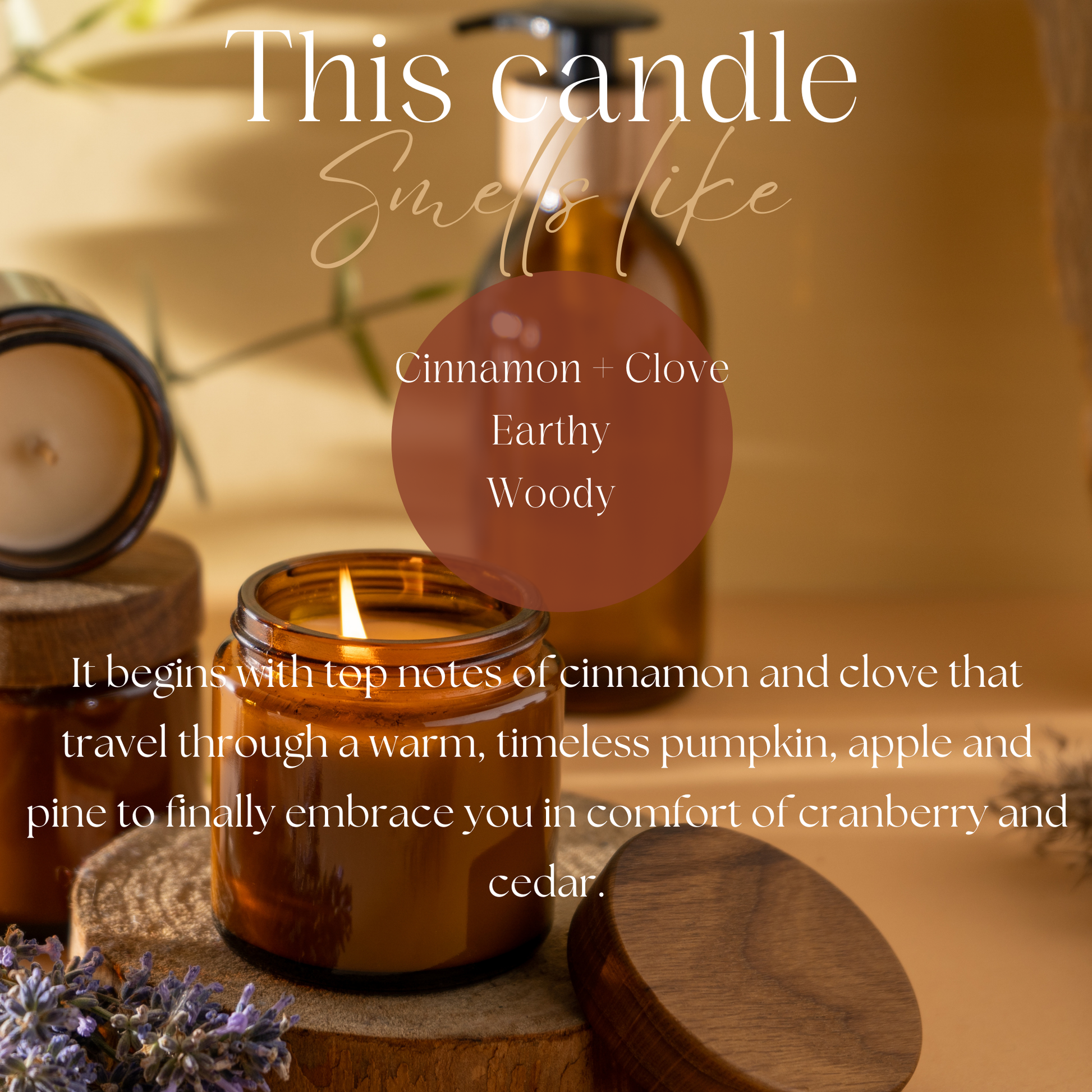 Trending hygge fall candle! Perfect Scandinavian home decor with cozy Nordic autumn vibes. Ideal hostess gift for Thanksgiving. Hand-poured soy candle.