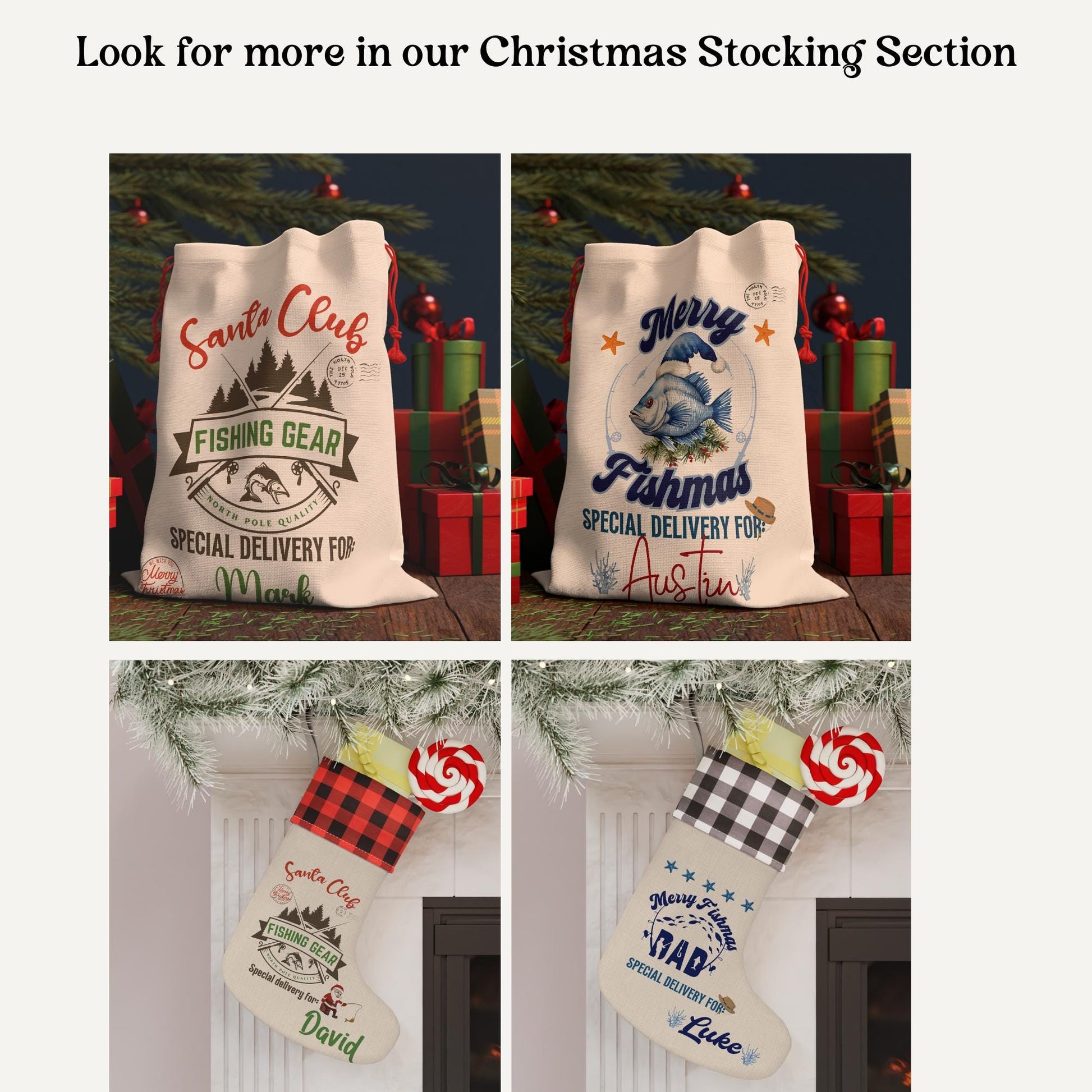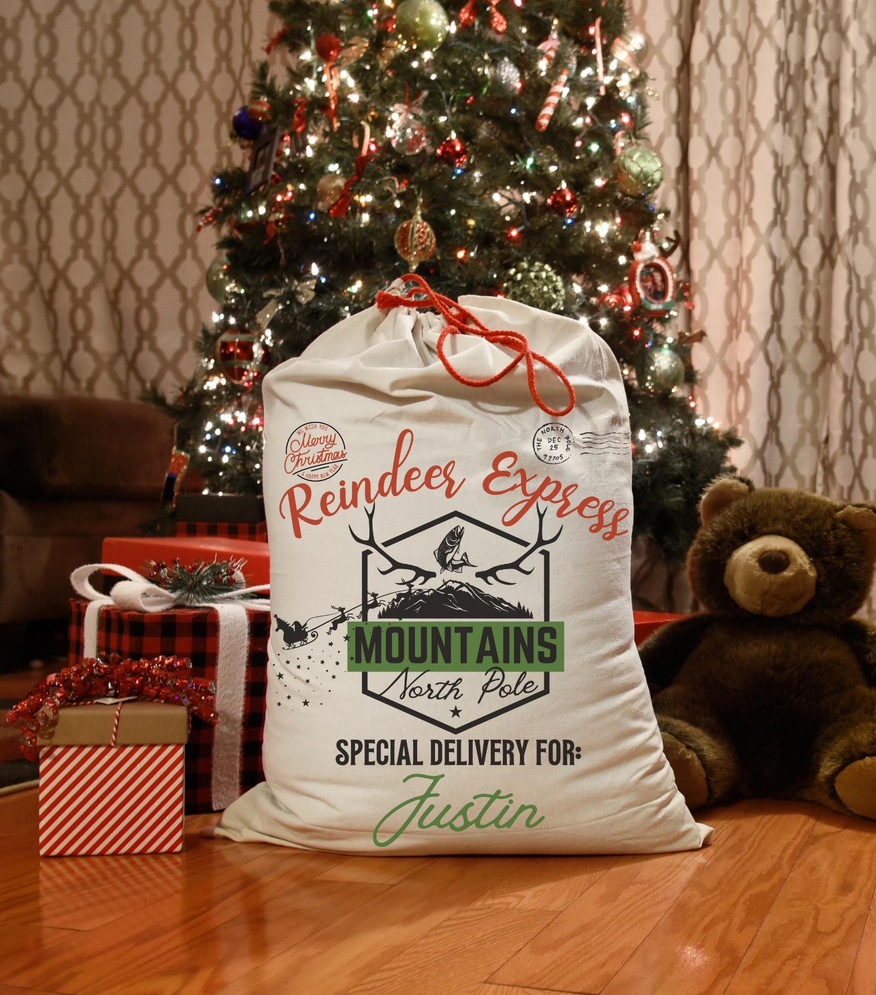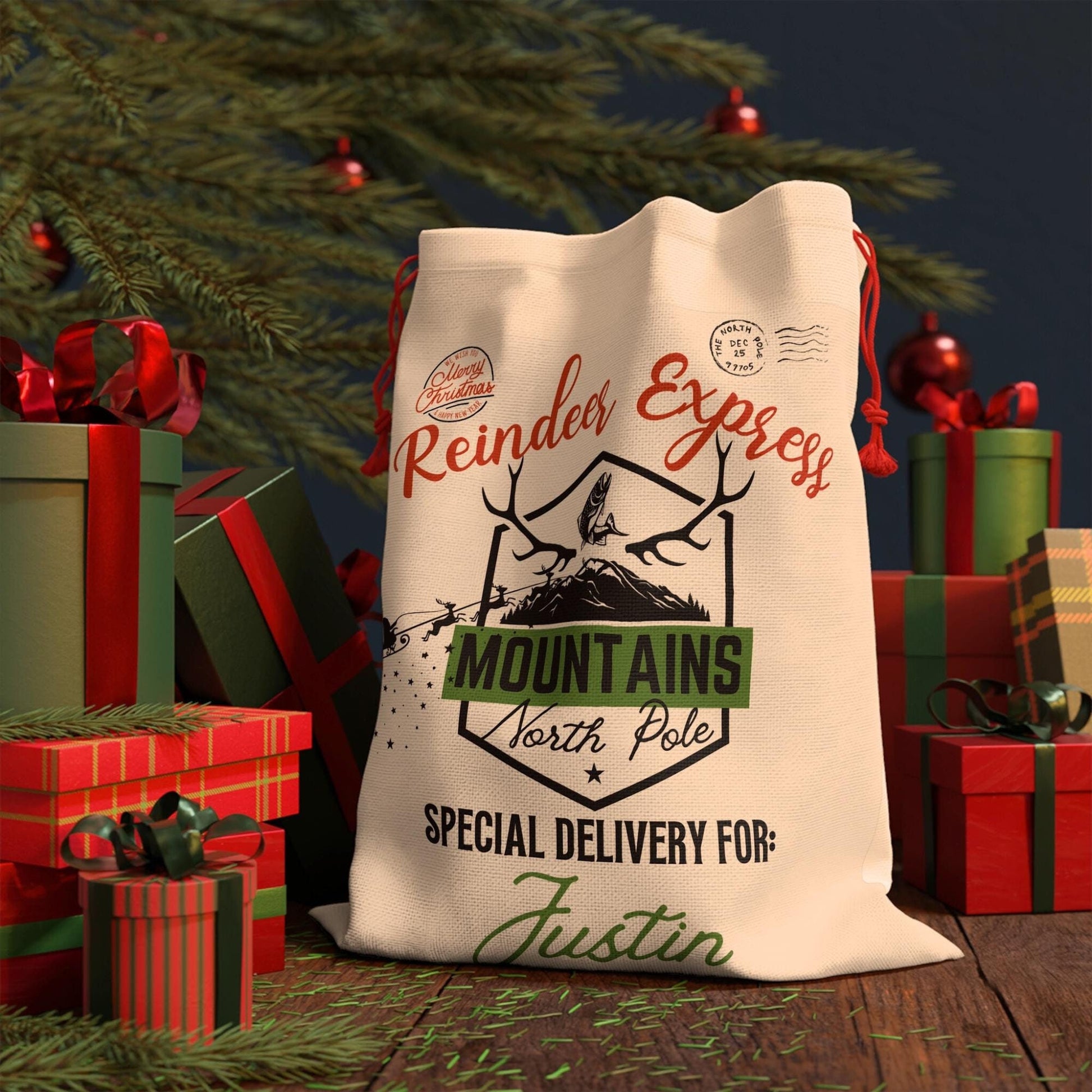 Mountain Fishing Christmas stocking - Camping Rustic Holiday Gift Bag