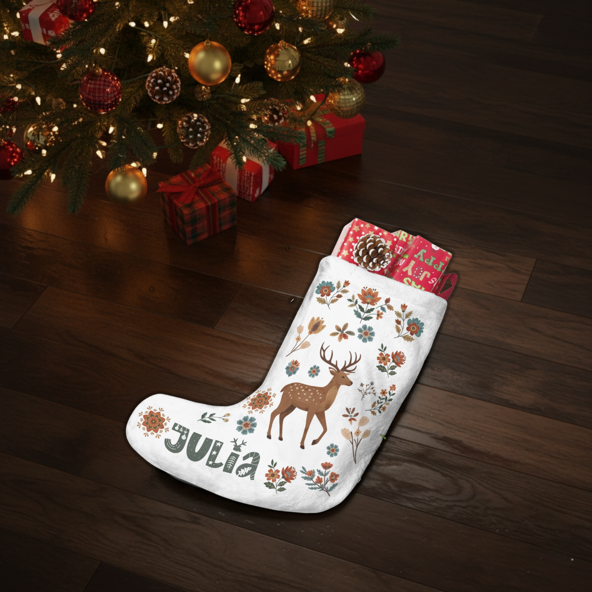 Personalized Christmas Stocking - Nordic Deer Cabin Decor - Custom Name Holiday Gift