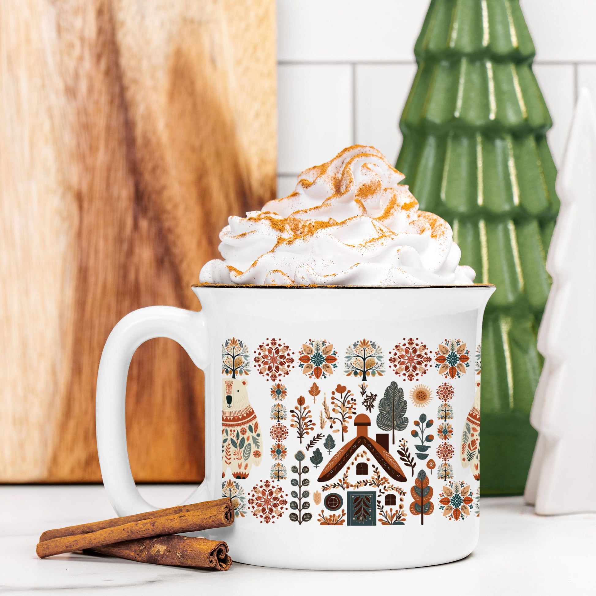 Polar Bear Campfire Mug Gift Ceramic Scandinavian Design Home Decor