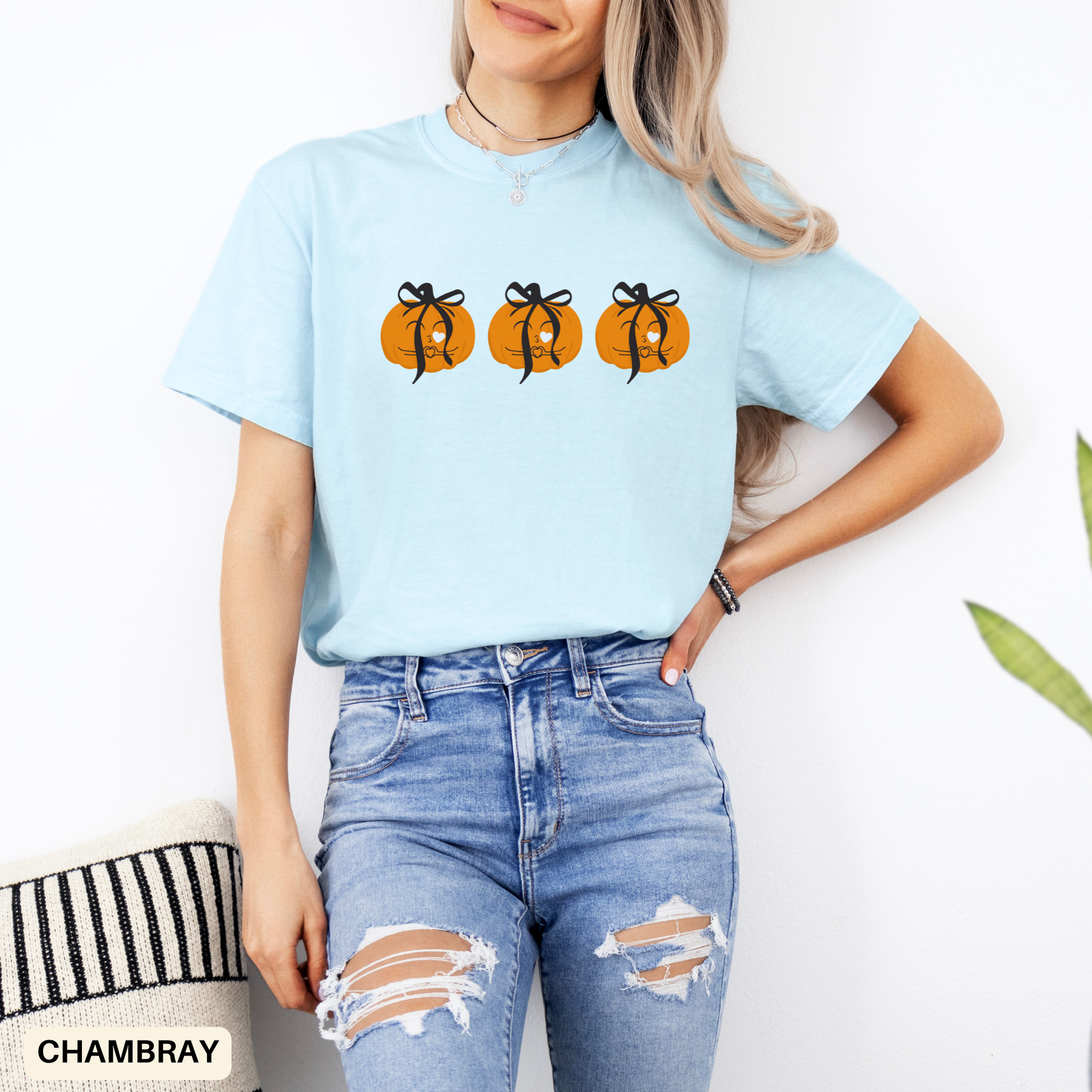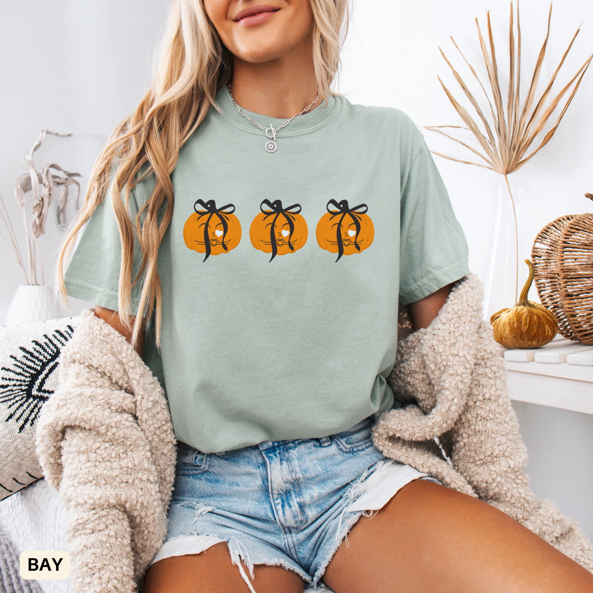 Trending coquette pumpkin shirt! Perfect fall aesthetic tee with Halloween outfit vibes. Cute pumpkin patch style for autumn lovers. Soft comfortable fit.